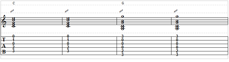 Same thing here in this tablature staff: