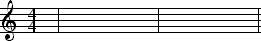 Note: The funny-looking symbol at the far left is a treble clef. This is just signifying that the music staff is for a treble clef instrument (which the guitar is), but it is of no concern to us at this point. We’ll talk about the two 4’s stacked on top of each other right next to the treble clef next.