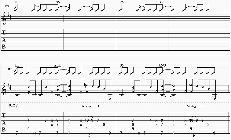 This is the recurring theme of the song. There are no real changes until the bridge. The tempo for the theme is 104. The tempo for the bridge is 126.