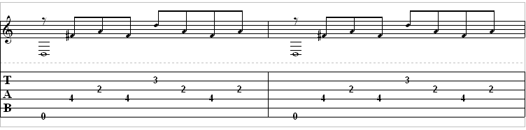 This song is in drop-D tuning. In drop D tuning the low E string is tuned down one whole step to D. This enables the guitarist to play power chords with a single finger. If your favorite band uses drop D tuning and you want to experiment with this tuning, by all means, do so. Whatever you do, don’t learn the guitar in drop D tuning-you’ll get all mixed up.