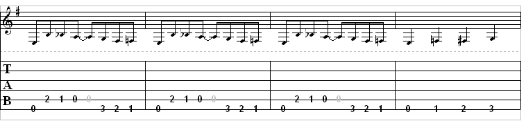 This one is a little bit harder to play. Fingerings are easy. Just use your 1st finger for notes on the 1st fret, your 2nd finger for notes on the 2nd fret, and your 3rd finger for notes on the 3rd fret. It makes a great finger exercise, too!